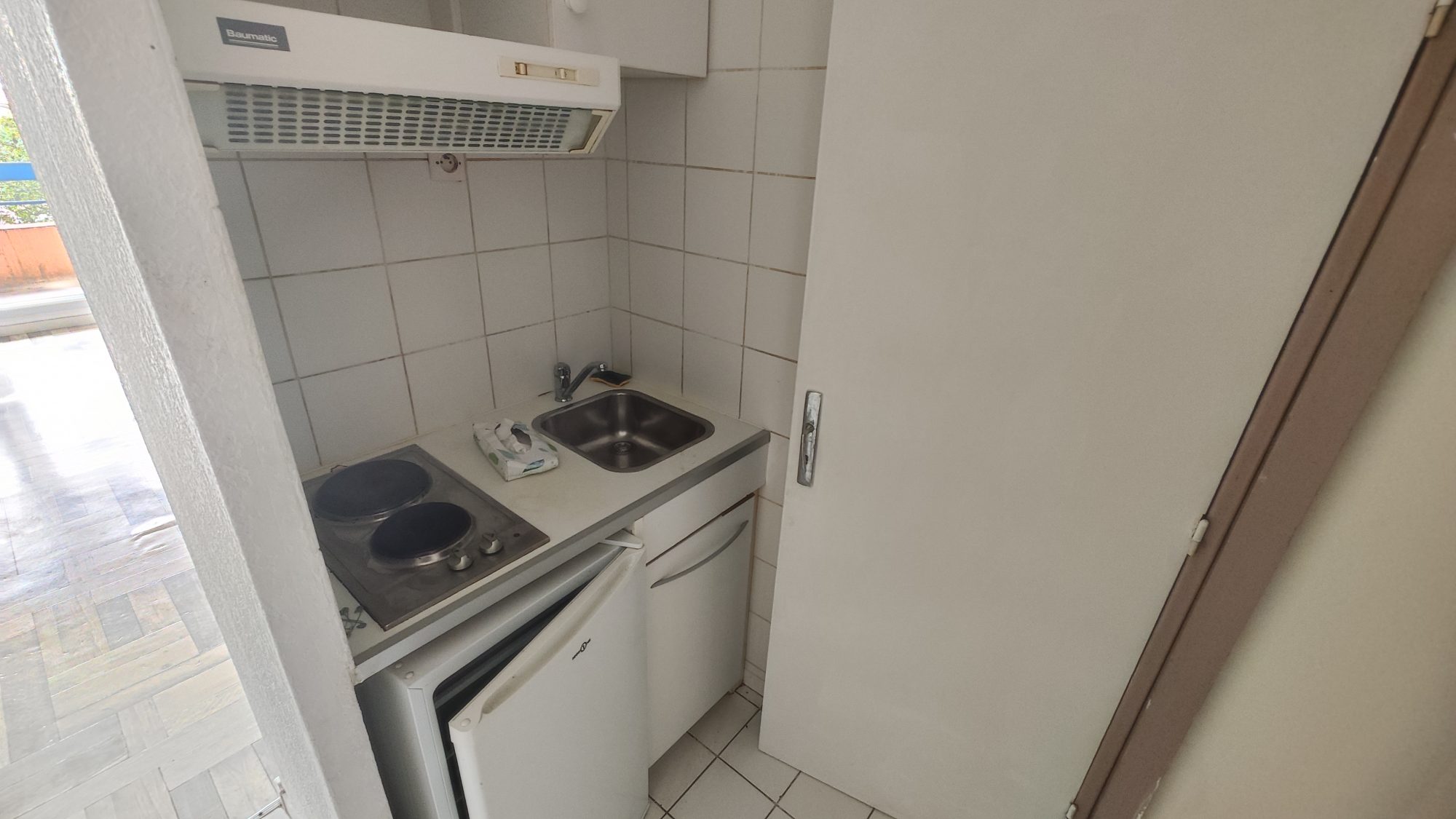 Dans le quartier Route de Courbessac à proximité des commerces, écoles, et transports en commun, Un studio comprenant une pièce à vivre avec rangements, donnant sur un coin cuisine équipée, une salle de bain, WC, un balcon et une place de parking.